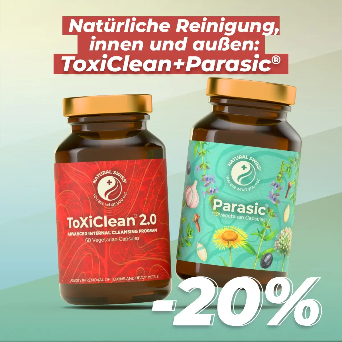 ToxiClean® – 100 % natürlichen Wirkstoffe der ToxiClean®-Kapsel können dabei helfen, die giftigsten Schwermetalle aus dem Körper zu entfernen. Dies entlastet nicht nur die Leber, sondern wirkt sich auch positiv auf andere Organe aus. Parasic®-Kapsel ist ein antiparasitäres Präparat, das pflanzliche Wirkstoffe enthält, die innere Parasiten bekämpfen.